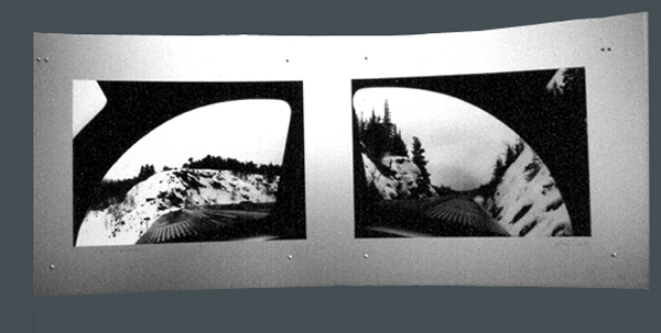 Ontario North - Diptych mounted on clear anodized aluminum..curved out from the wall measures 27" x 63"